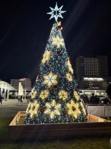 沼津ライオンズクラブのメンバーである L 山本真太郎・L 加藤あきこ 両名が中心となり立ち上げた「沼津イルミネーション実行委員会」では毎年冬に沼津市内へ、イルミネーションを設置する活動を続けています。今回は6年目の取り組みとなり、沼津駅北口広場に高さ6mを超える巨大なクリスマスツリーが設置されました。沼津ライオンズクラブも協賛させていただいており、そのお披露目となる点灯式に、参加しました。
