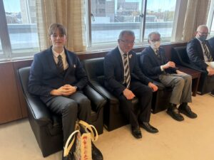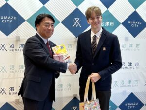 2025年12月12日 YCEプログラムで沼津にホームステイをしている ヨハン・ノール君(18歳/ドイツ・ケルン在住) が、沼津ライオンズクラブの橋本会長をはじめとする理事とともに、沼津市長を表敬訪問しました。