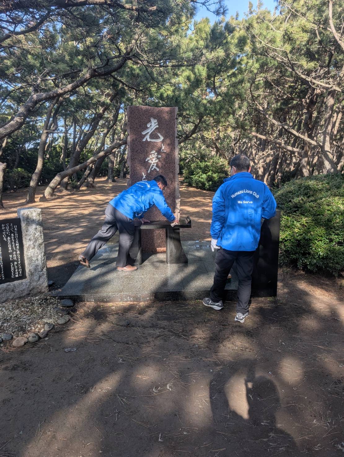 2026年1月26日 沼津ライオンズクラブの視力福祉委員会を中心とするメンバーで,千本松原にある献眼者慰霊碑の清掃を実施しました。
