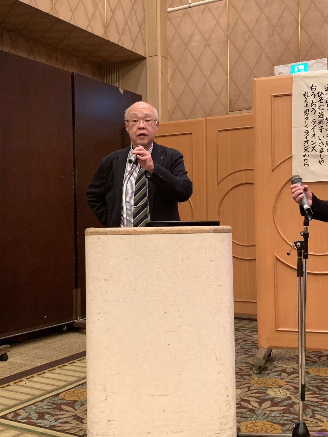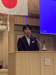 LCIF寄付等の各表彰が行われた後、医療法人あいけい会理事長・眼科専門医の大高功先生による講演が行われました。大高先生はTVで『日本国内のスーパードクター』として取り上げられたこともある眼科の名医であり、横浜の病院では先進医療、西伊豆の病院では僻地医療という異なる二つの医療を一人で担っている方です。僻地医療を始めたきっかけは、『医療不足により困ってる人のために医療をしたい。患者のための医療とは何かを考えた結果が西伊豆の病院。』とのことで、僻地医療は大変やりがいがあると述べられていたのがとても印象的でした。また、『静岡県アイバンクに対する沼津ライオンズの貢献はよく知っており、大変感謝している。IPS細胞から角膜が作られるようになったようだがアイバンクの必要性はこれからも変わらないだろう。』とのお言葉も頂き、沼津ライオンズの一員として大変勇気づけられました。沼津ライオンズがこれまで取り組んできた献眼活動の重要性を再認識し、今後の視力福祉活動の励みにもなる素晴らしい例会となりました。