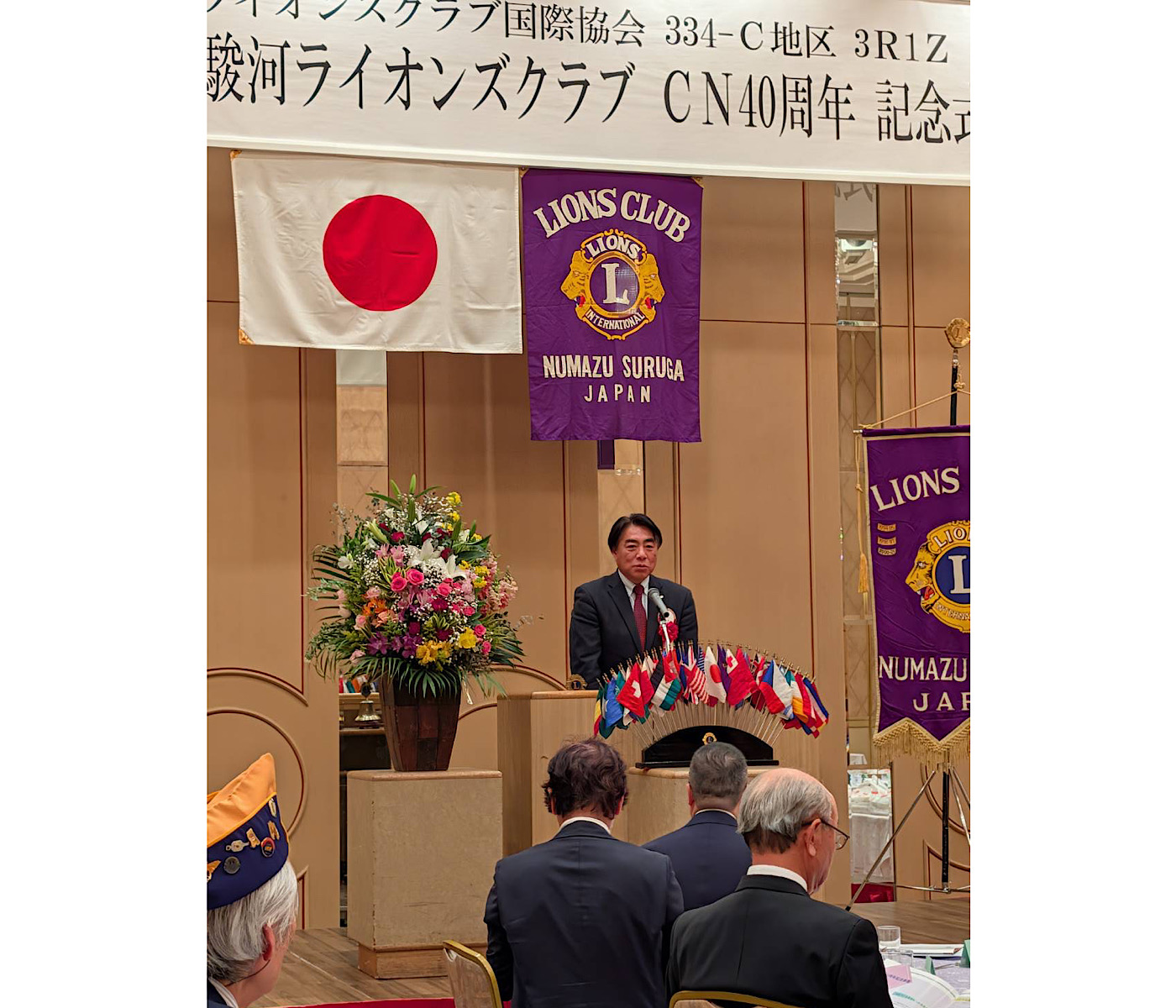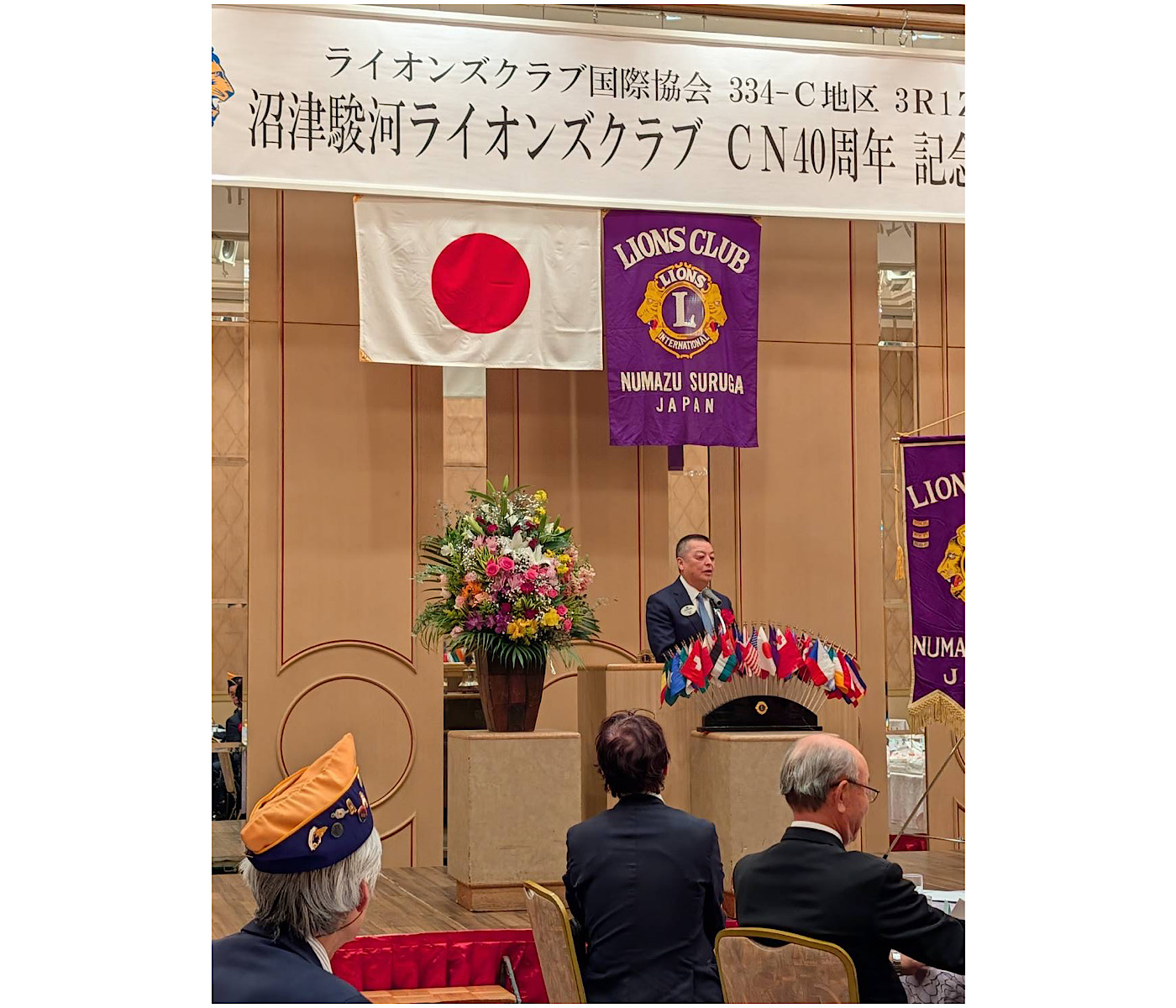 沼津駿河ライオンズクラブの40年にわたる奉仕の歩みに敬意を表するとともに、このような節目の式典に参加させていただきましたことに、深く感謝申し上げます。