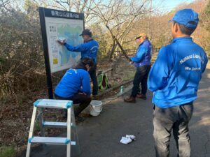 また当日早朝には、有志により山頂までのルートにある案内看板などの清掃活動も行いました。