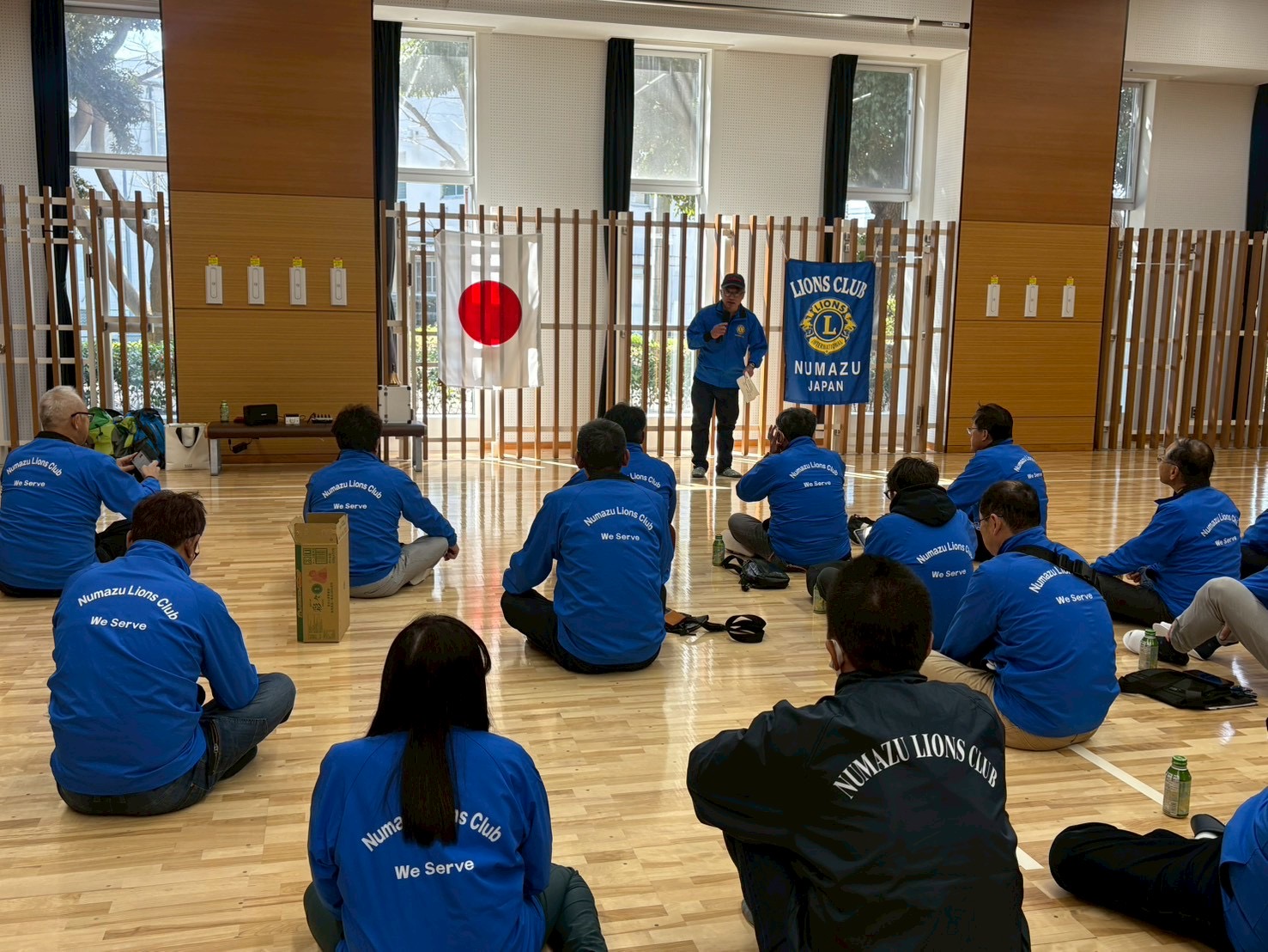 昨年同様、例会場である沼津総合体育館まで清掃をしながら移動し武道場をお借りして例会を開催。指名委員長より次年度の役員人事が発表され、土井会長予定者をはじめ役員予定者の皆さんが承認されました。