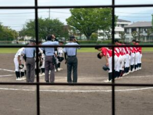 7回裏、金岡中はツーアウト満塁まで粘りを見せましたが、最後はセンターフライでゲームセット。