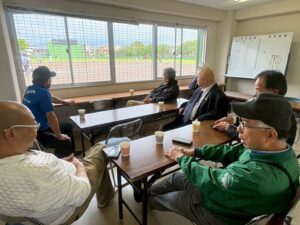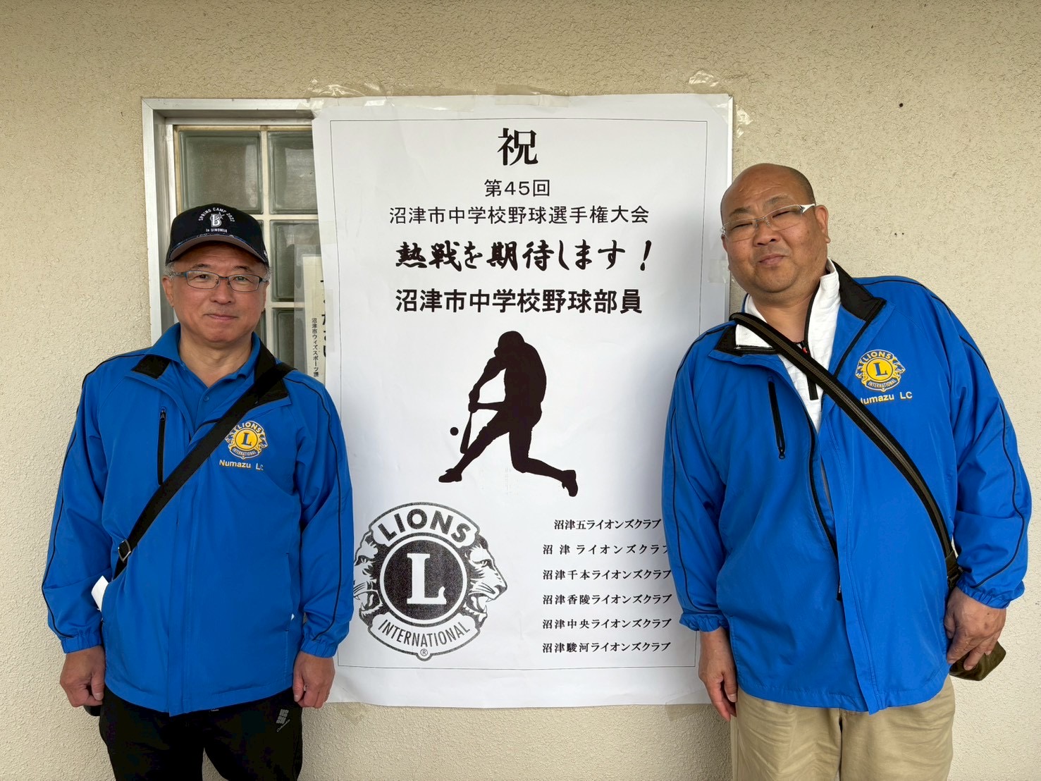 2026年4月29日 第45回沼津市中学校野球選手権大会(沼津5ライオンズクラブ主催)が沼津市営野球場にて開催され、橋本会長、川口幹事、加藤明子マーケティング委員長が出席して来ました。